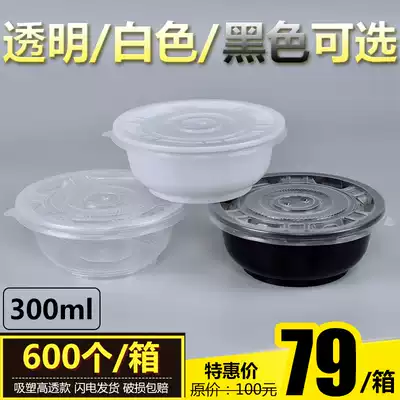 Disposable bowl plastic with lid round 360 environmental protection soup bowl transparent thickened 300ml small delivery packaged meal bowl