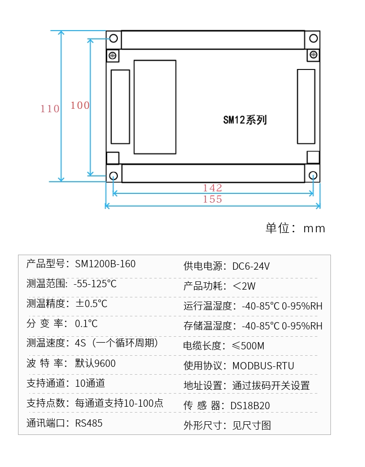 RS485 - 10 channel 1000 - point DS18B20 temperature strong drive acquisition module remote transmitter