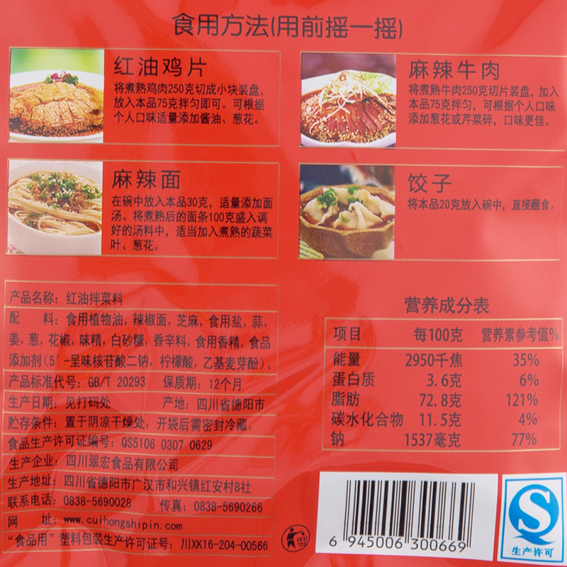 Cold mixing vegetable seasonings Cuimacro red oil mixed with vegetable stock 150g * 4 bag cold mixed pasta cold mixed lung sheet seasoning
