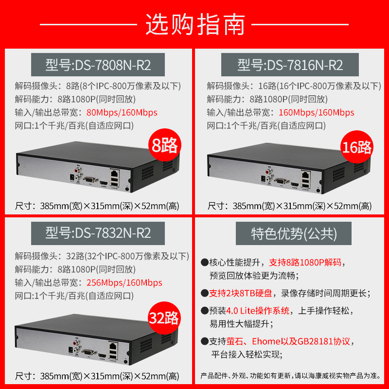 Hikvision network recorder 7808N-R2 dual hard drive bit 8 16 32-way NVR factory monitoring burner