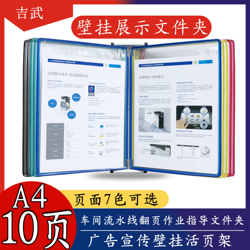 Jibu 10-page wall-mounted data rack A4 standard operating instructions display folder File rack A4 5-page 10-page wall-mounted display folder display rack page-turning wall-hanging folder