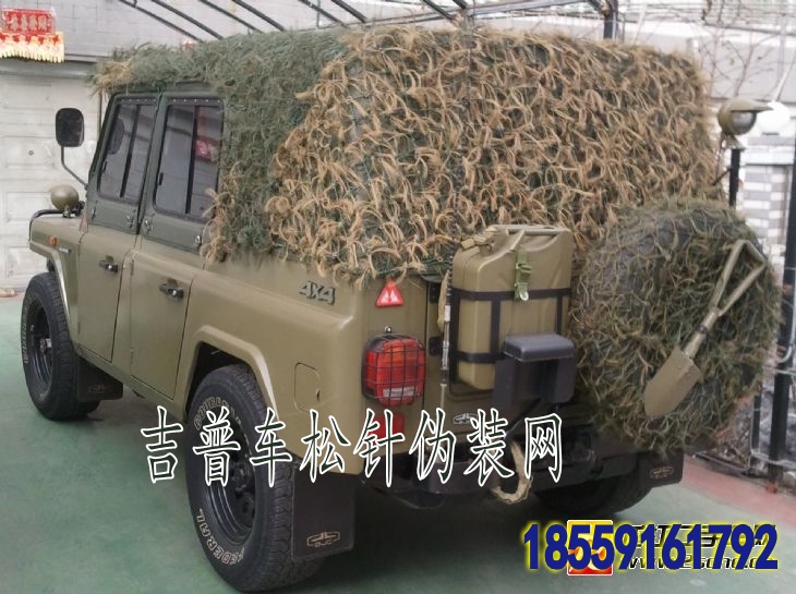 Pine needle pseudo-mounted net (roof to rear end) pine needle pseudo-mounted net (covering both side windows) Support for custom size camouflated or military green Please note after Note Rear Spare Tire pseudo-clothing net