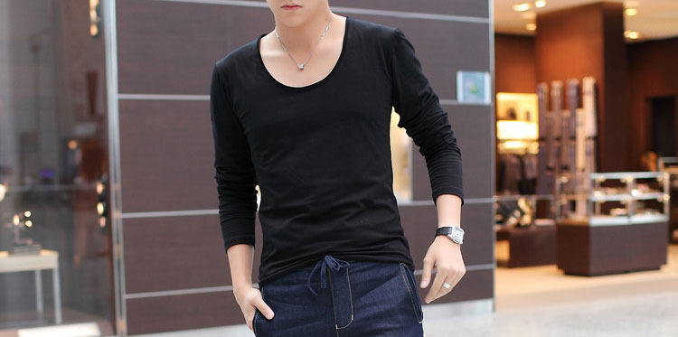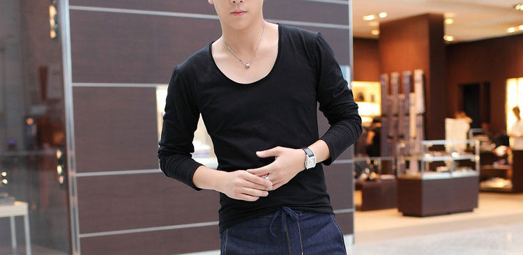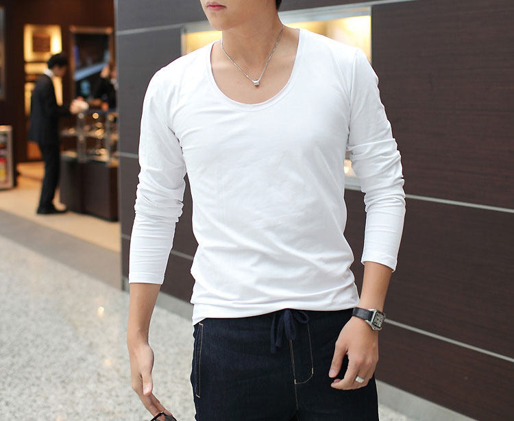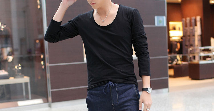 Gats up for code men's clothing low collar inner lap long sleeve large size T-shirt men's big round collar pure color blouse fat brother