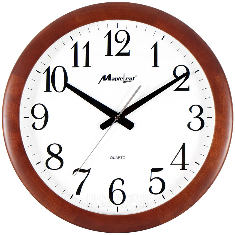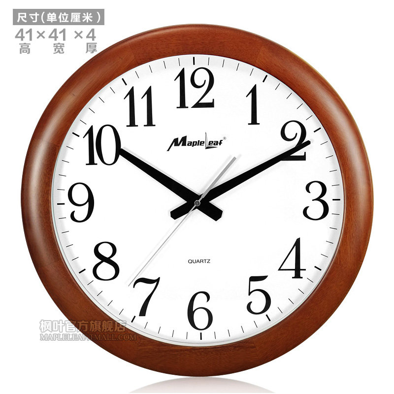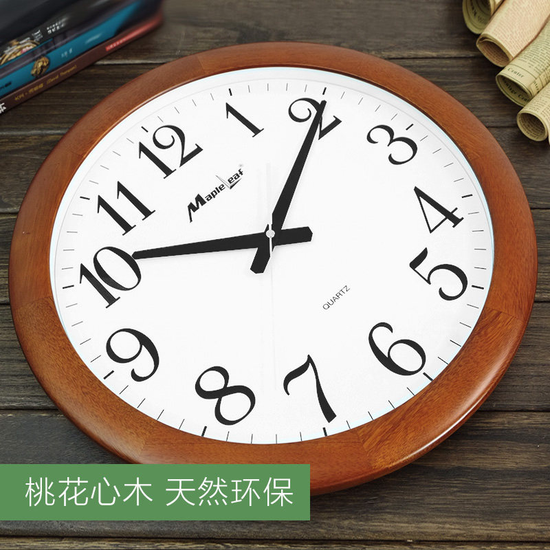 Maple leaf round watch Simple modern wall clock Household hanging living room round solid wood atmospheric creative clock electronic hanging watch
