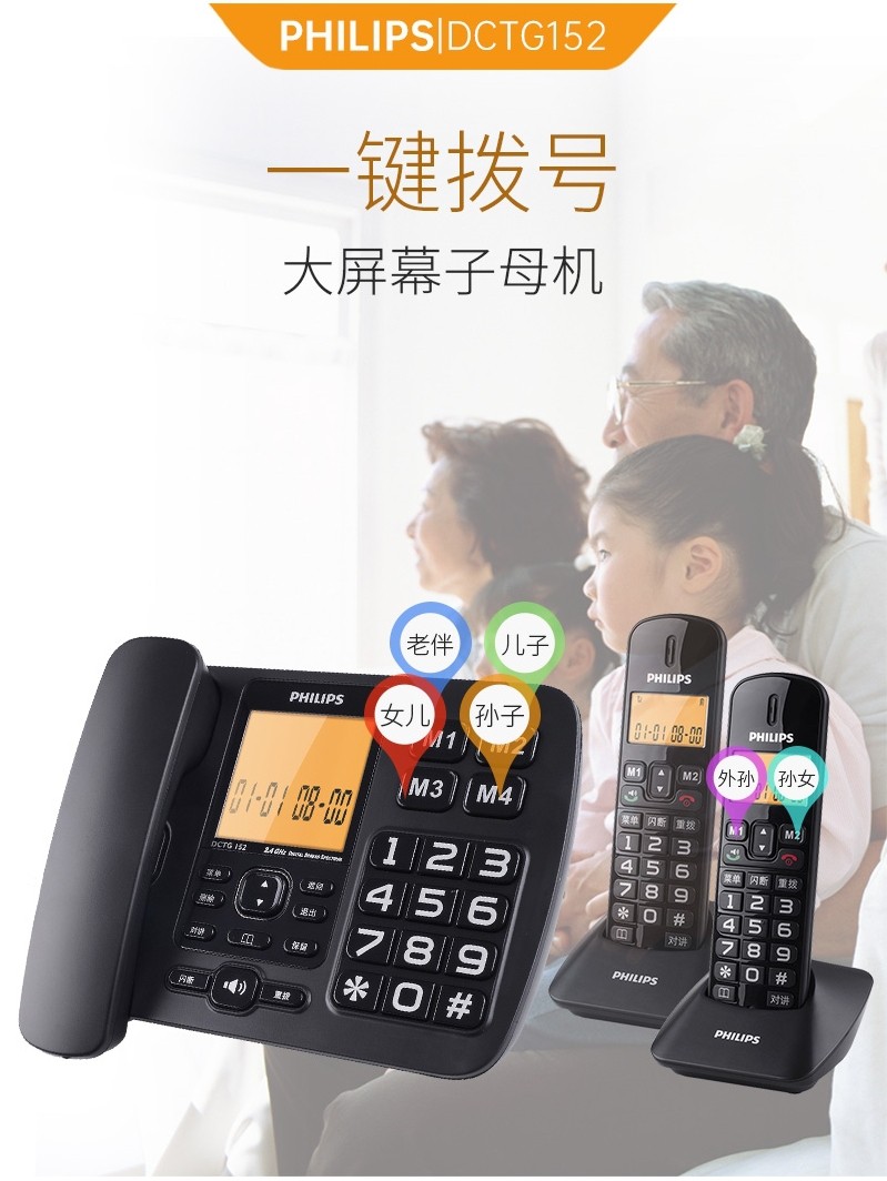 Philips cordless telephone, mother and child machine, home office, commercial wireless fixed landline, DCTG152 for elderly people