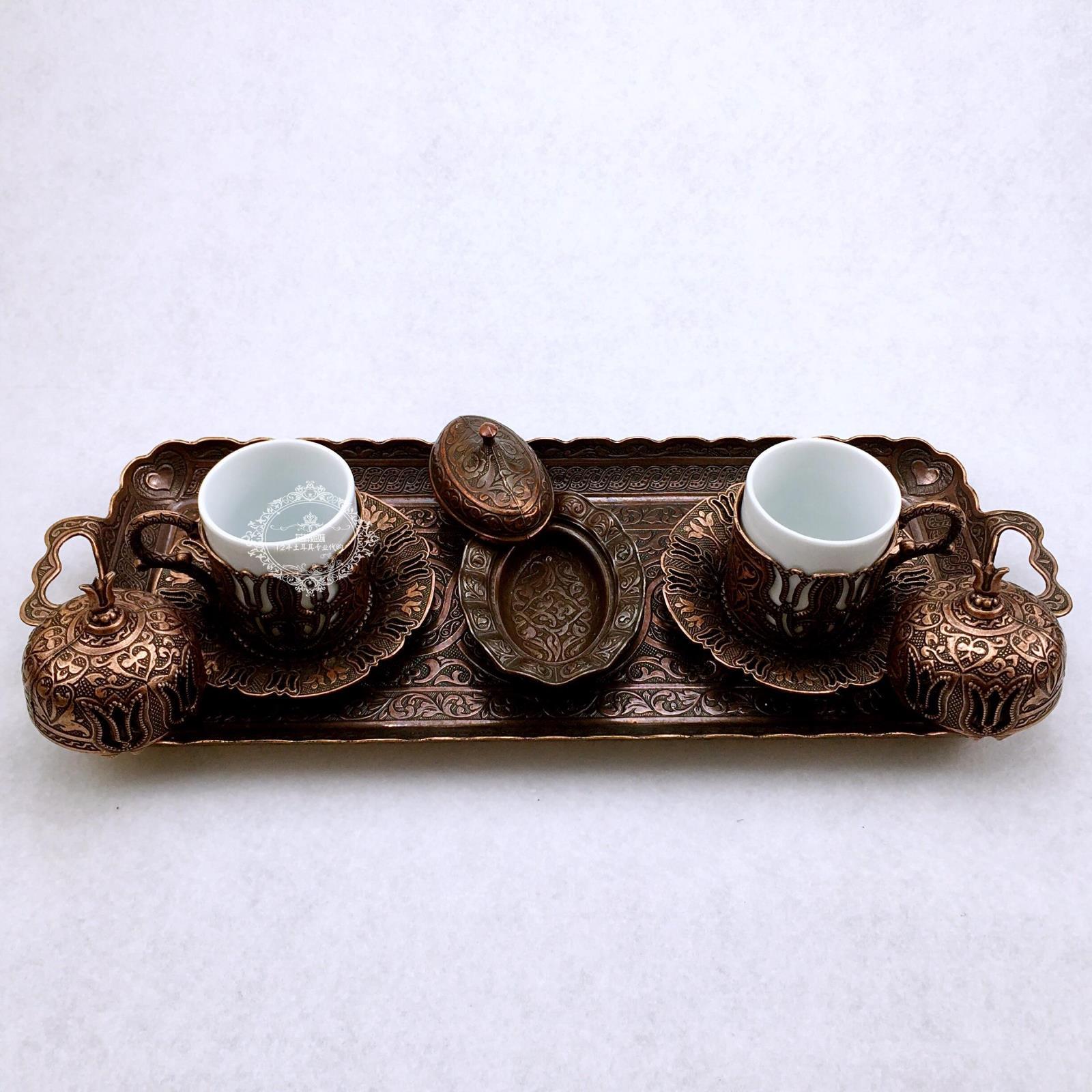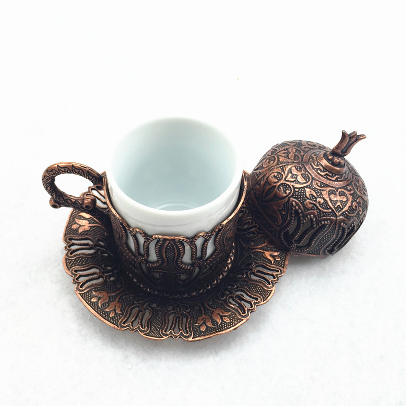 Turkey imported vintage copper tire porcelain bile coffee cup set Tulip hollow design European aristocratic style