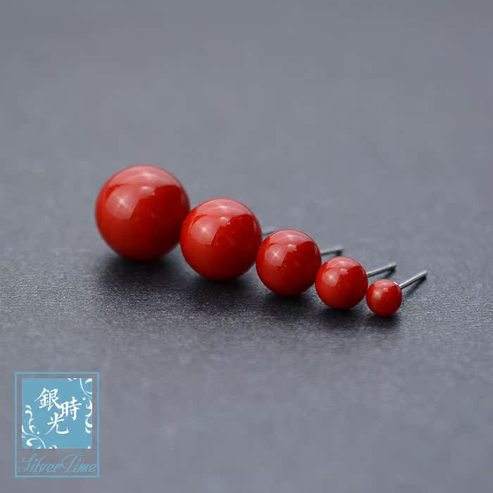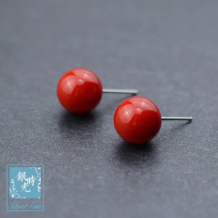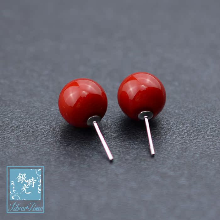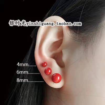 Silver time S925 pure silver ear nails red fruit ball ear nails creative sweet temperament coral ear decoration woman
