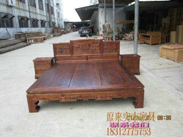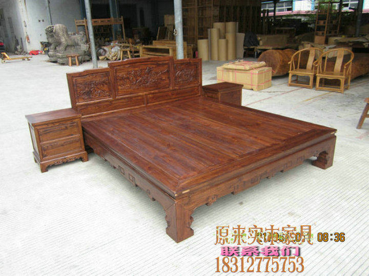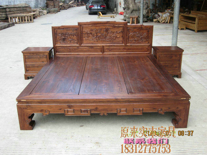YL024 Sculpture Solid Wood Double Double Bed 1 8 1 5 m Double Bed Elm Bed Made Bed Made