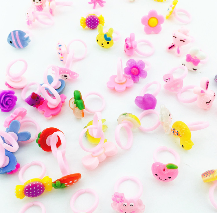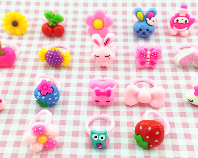 Korean version of children's cartoon cute resin small ring girl gift Candy color transparent solid color bulk ring