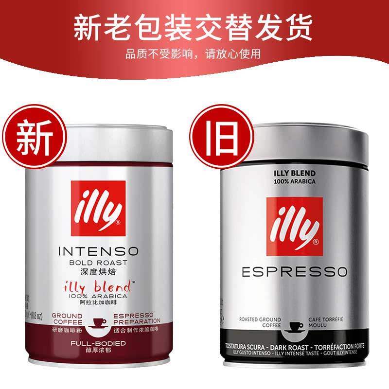 illy coffee bean powder Italian imported concentrated black coffee Deep roasted illy freshly ground coffee 250g cans