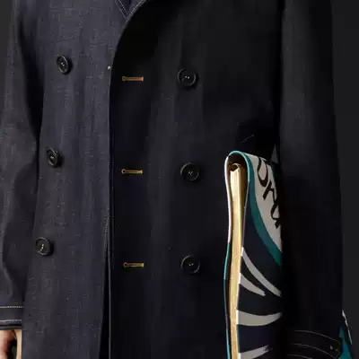 British men's URSMART autumn and winter New waist long version men's denim windbreaker couples Men's windbreaker