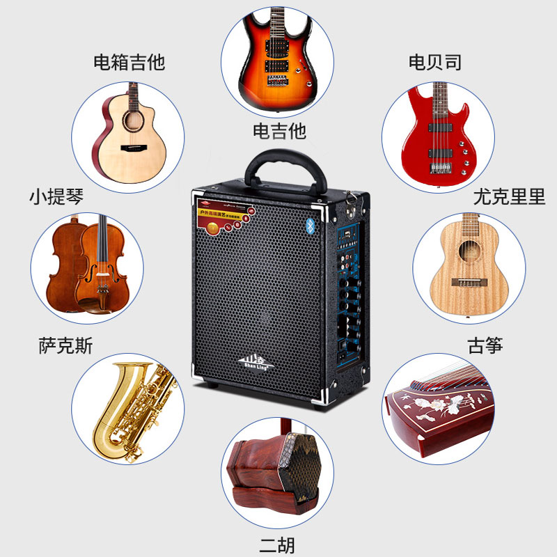Shanling street selling singing speakers Guitar electrical box charging outdoor playing portable folk songs wandering singer stereo