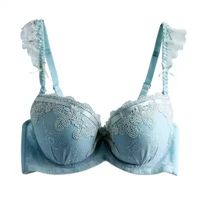 Big chest, big size, three-breasted women's underwear, thin bra, women's bra, deep V, gathered adjustment, sexy blue