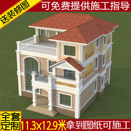 Three Floors Villa Design Drawings New Rural Self-Built House construction plot two-and-a-half duplex drawing valid fruit plot full set-Taobao