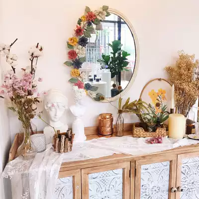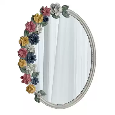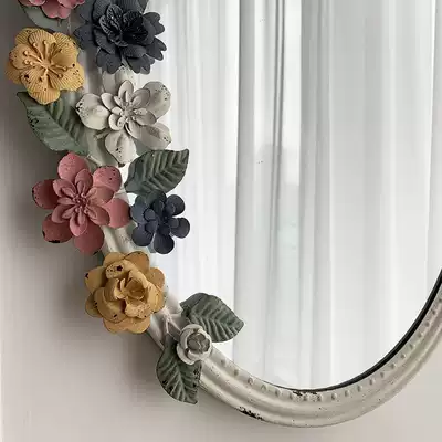 JZ015 French pastoral American retro old wrought iron flower decoration mirror powder room bathroom makeup mirror