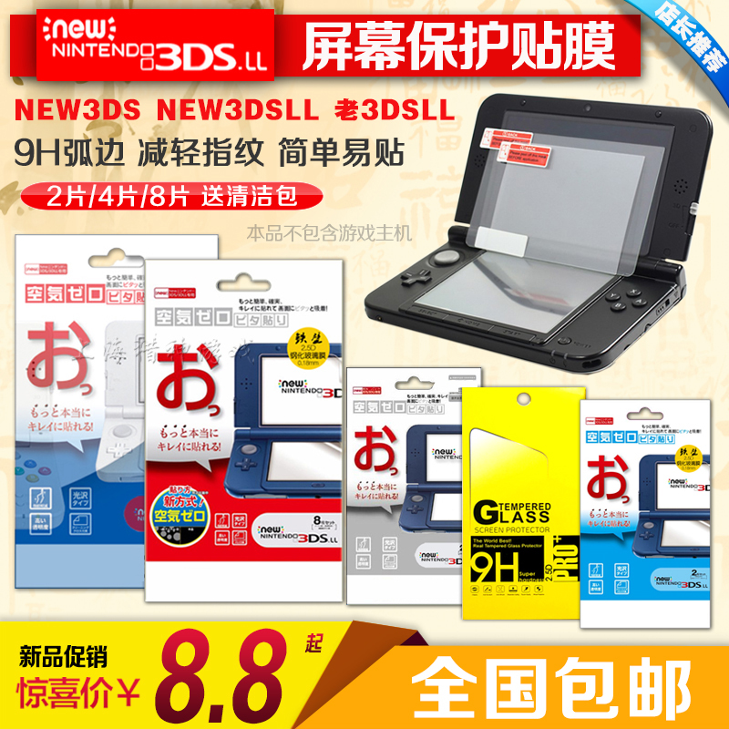 New 3DSLL(2 pieces)On the tempered lower HD New 3DSLL(4 pieces)on the outside of the upper and lower screens New 3DSLL (8 pieces)on the outside of the upper and lower screens New small 3DS (2 pieces) on the outside of the upper and lower screens New small 3DS (2 pieces) on the outside of the upper and lower screens New small 3DS (2 pieces) on the outside of the