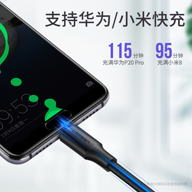 Green Union typec data line André tapyc suitable for Xiaomi 9 Samsung Vivo Huawei Honor v20oppo mobile phone flat 3a Fast refill tpc charging wire paver short typ