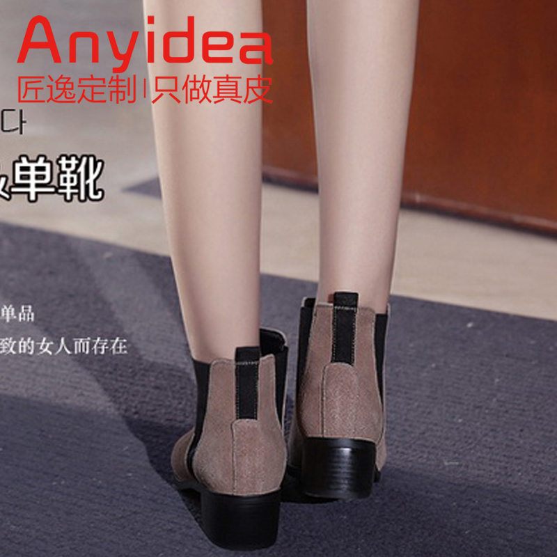 Boots genuine leather short custom cow leather coarse heel small new OLJ2108 artisan pointy Korean version women boots boots nude boots Martin
