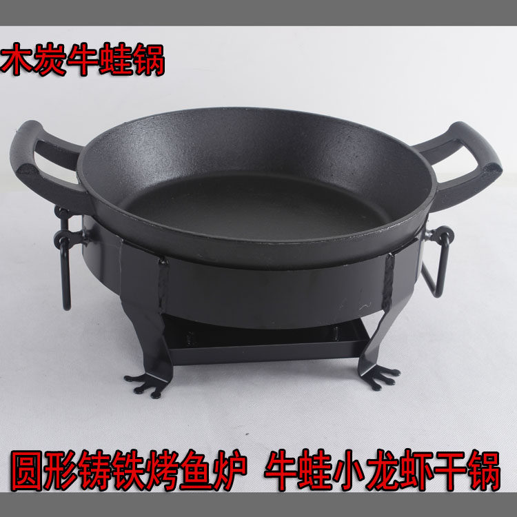 Cast iron round grilled fish stove Hemp Spicy Aroma Pan Thickened Cast Iron Bullfrog Pan Small Lobster Dry Pan Pan Frog Comes To Bull Frog Pan