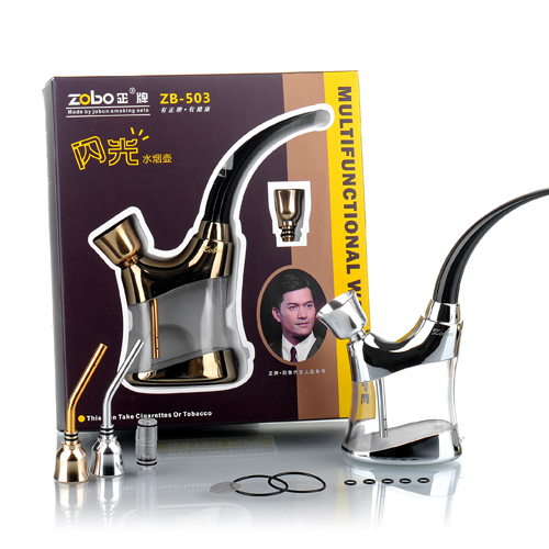 Zobo genuine pipe smoking pot gold and silver two-color cycle filter hookah personalized creative colorful flash