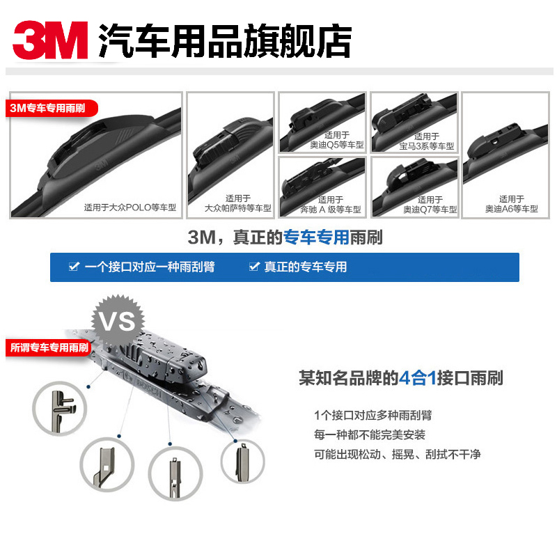 3M Foss wiper suitable for Tiguan speed tendron Lang Yibao to polo boneless universal wiper wiper