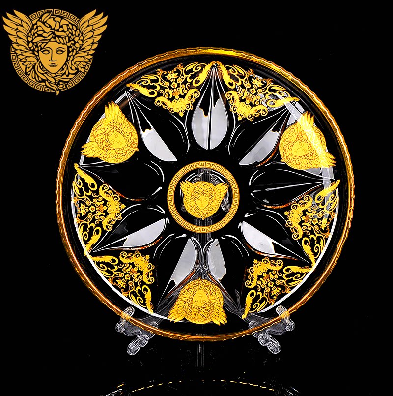 White Yellow Blue Sky Blue Bright Yellow Inlaid Real Gold Drop Flowers Unleaded Crystal Flat Pan Inlaid Real Gold Drop Flower Unleaded Crystal High Foot Flat Pan Inlaid Real Gold Medusa Drop Flower Unleaded Crystal Flat Pan Inlaid True Gold Beauty