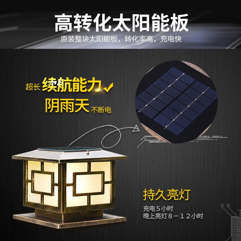 Column Head Lamp Solar Lamp Outdoor Wall Lamp Garden Lamp Door Column Lamp Villa Courtyard Wall Headlights Waterproof Gate Lamp