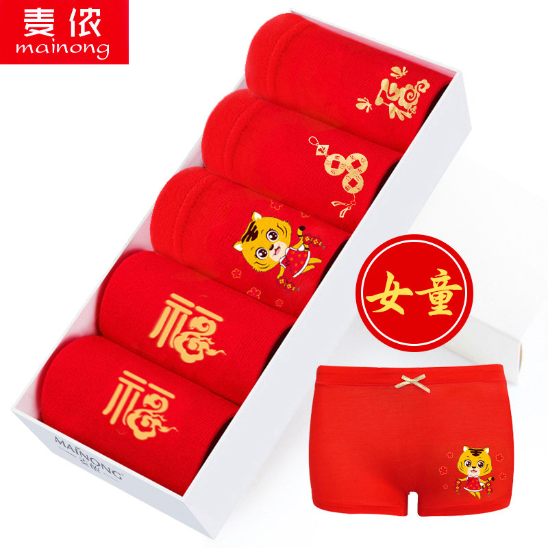 Girl's life tiger 12-year-old 13-year-old child red underpants CUHK Children's pure cotton four-corner underpants don't clip pp belongs to tiger