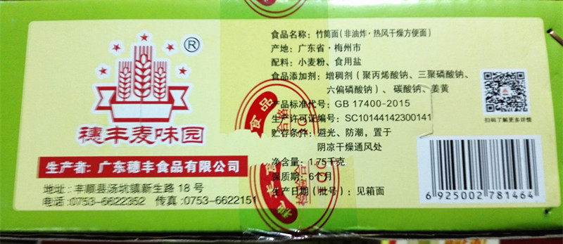 Guangdong specialty Suifeng wheat flavor garden bamboo tube noodles corrugated noodles hot pot noodles plain noodles 1750g FCL