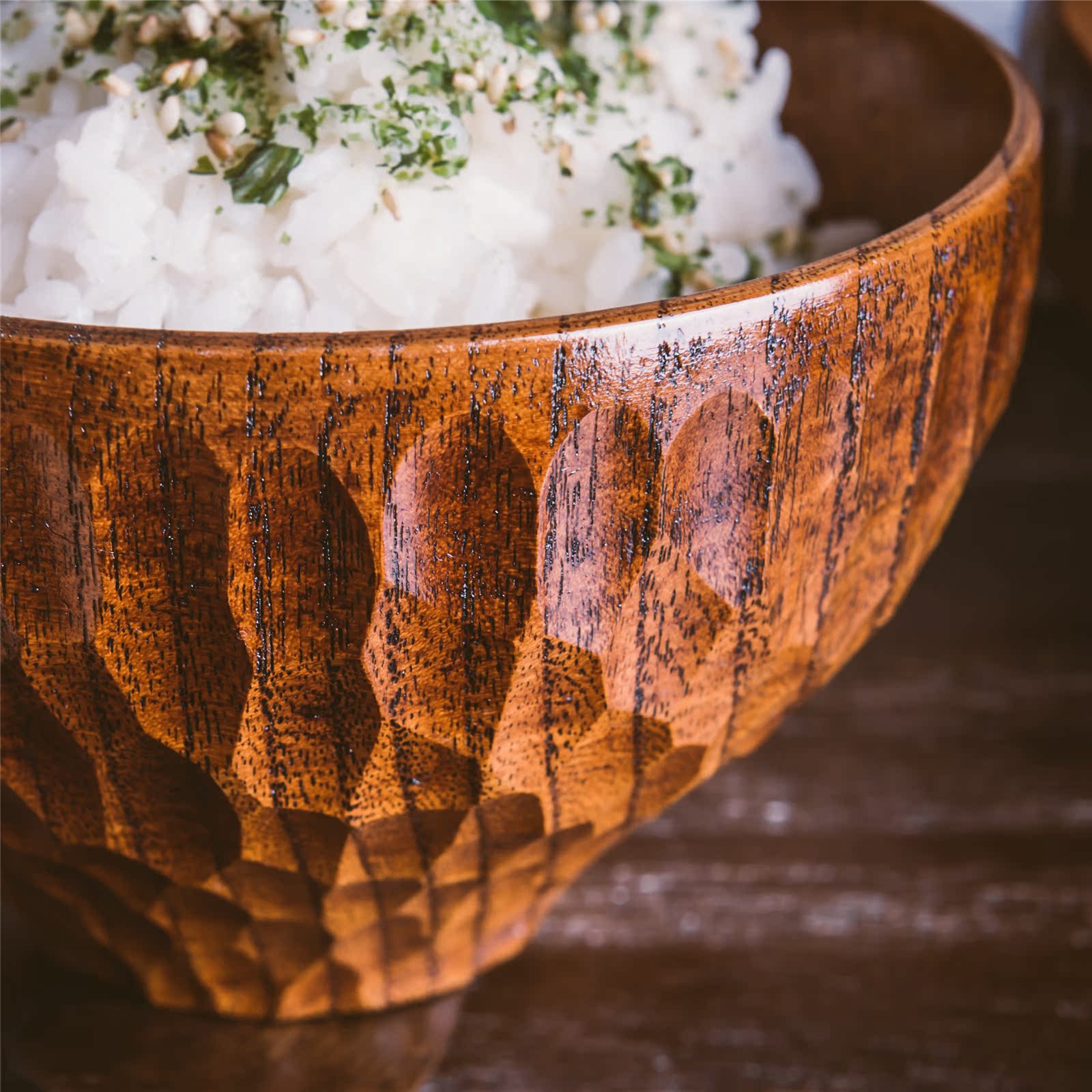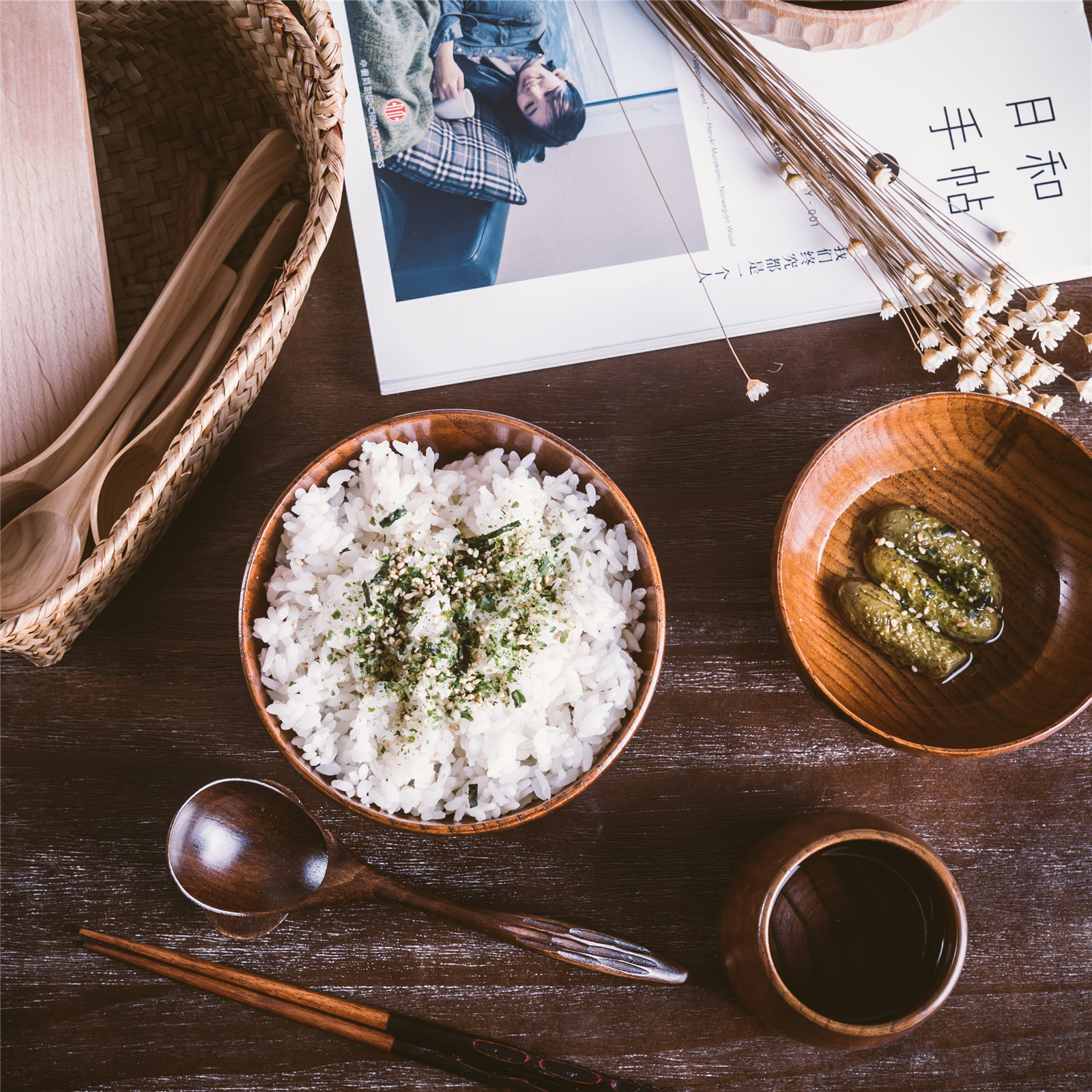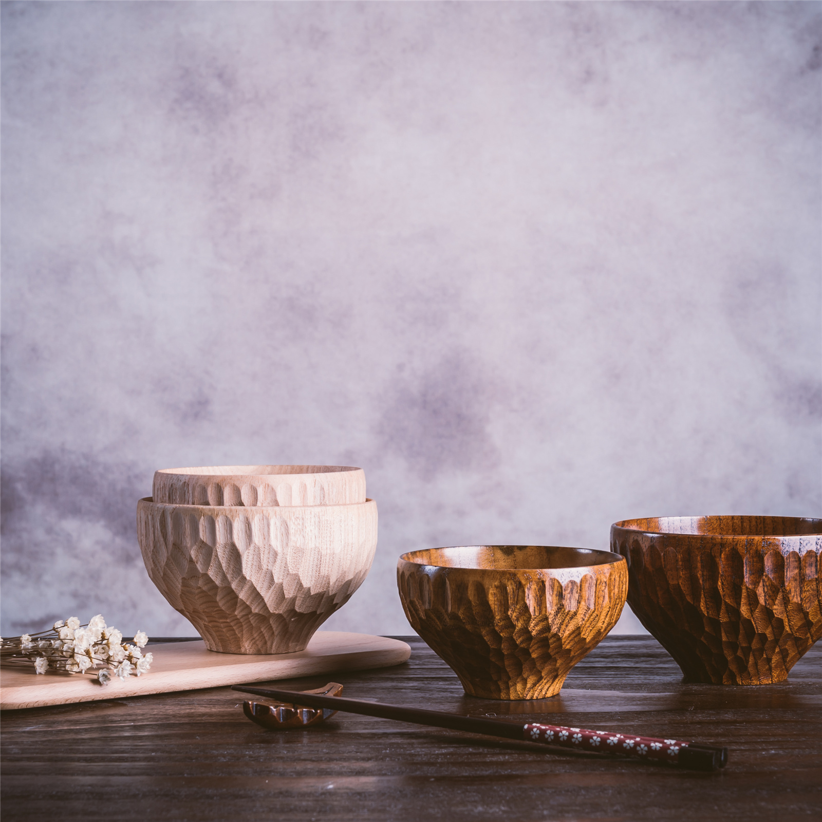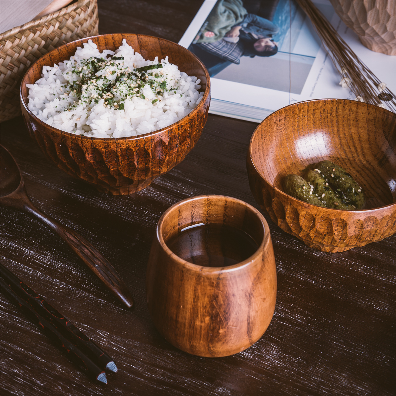 Ruosu Life Creative Japanese Household Wooden Tableware Chinese Style Rice Bowl Drinking Soup Bowl Round Bowl Small Vegetable Bowl Set