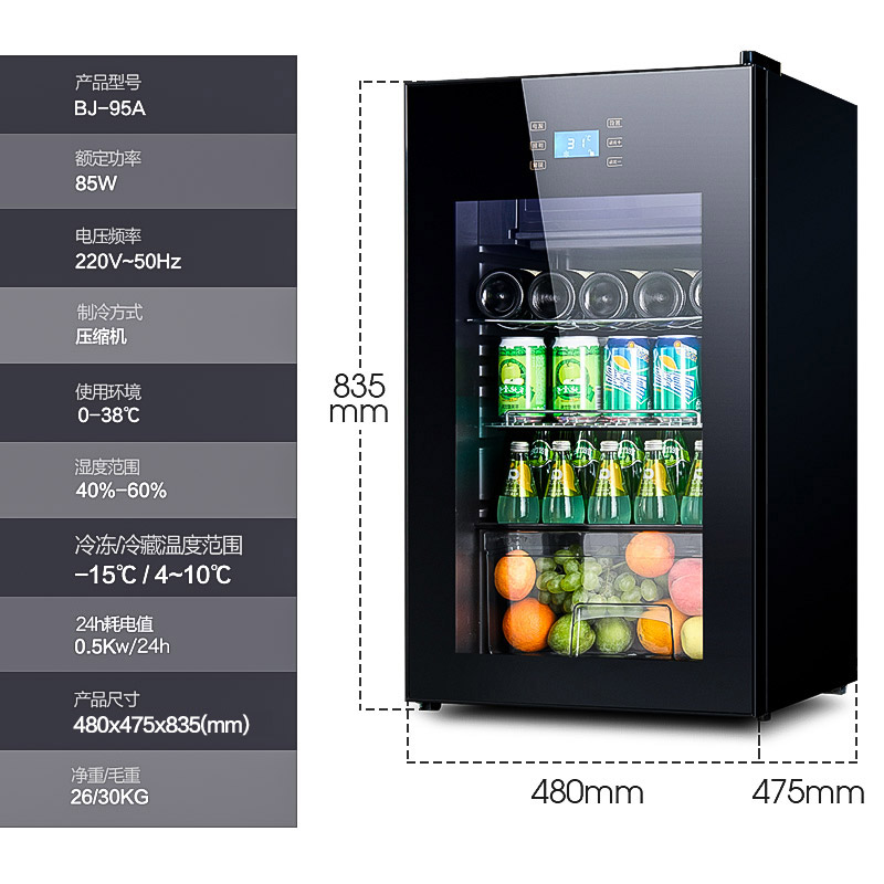 Zumburg BJ-95A Ice Bar Thermostatic Wine Cabinet Home Living Room Small Fridge Fruit Drink Medicine Refreshing Refrigerated Cabinet