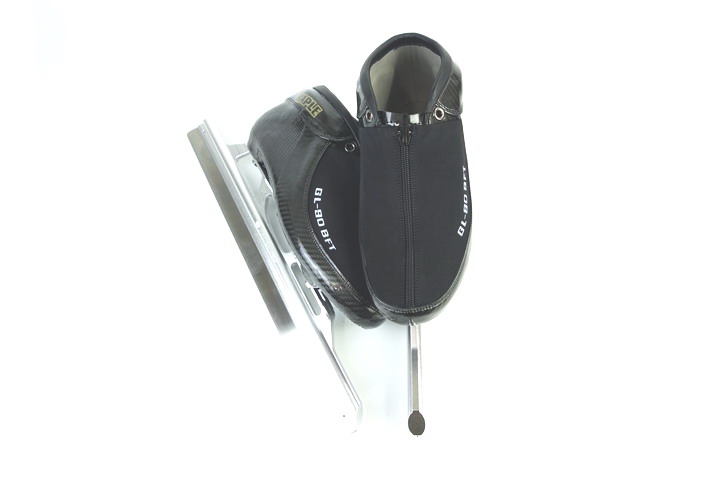 Speed skating with ice-knife shoes in the water