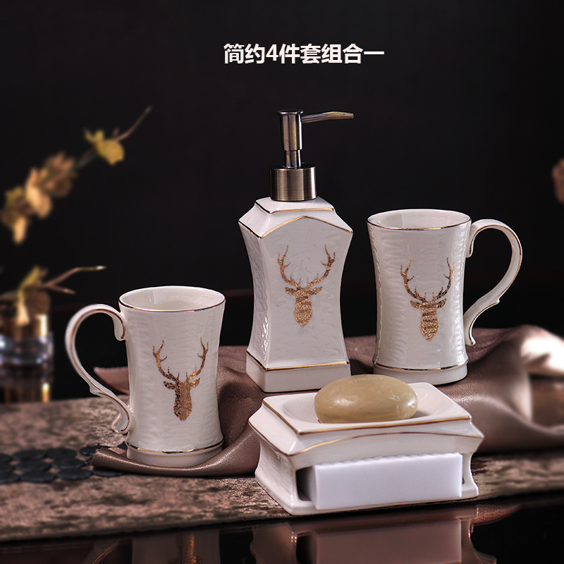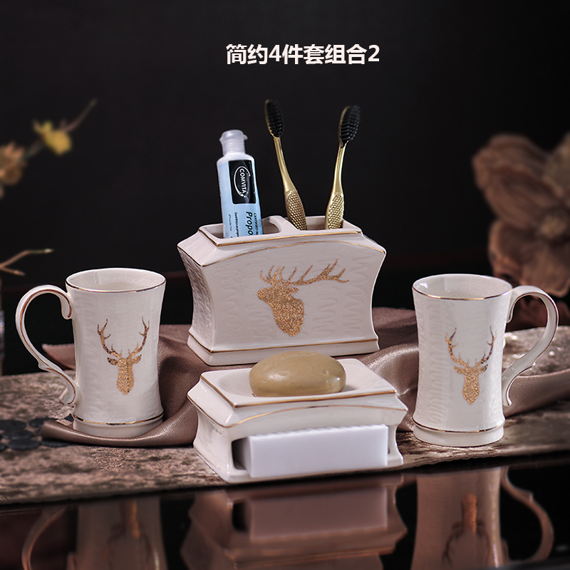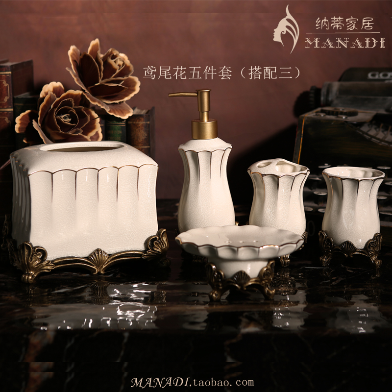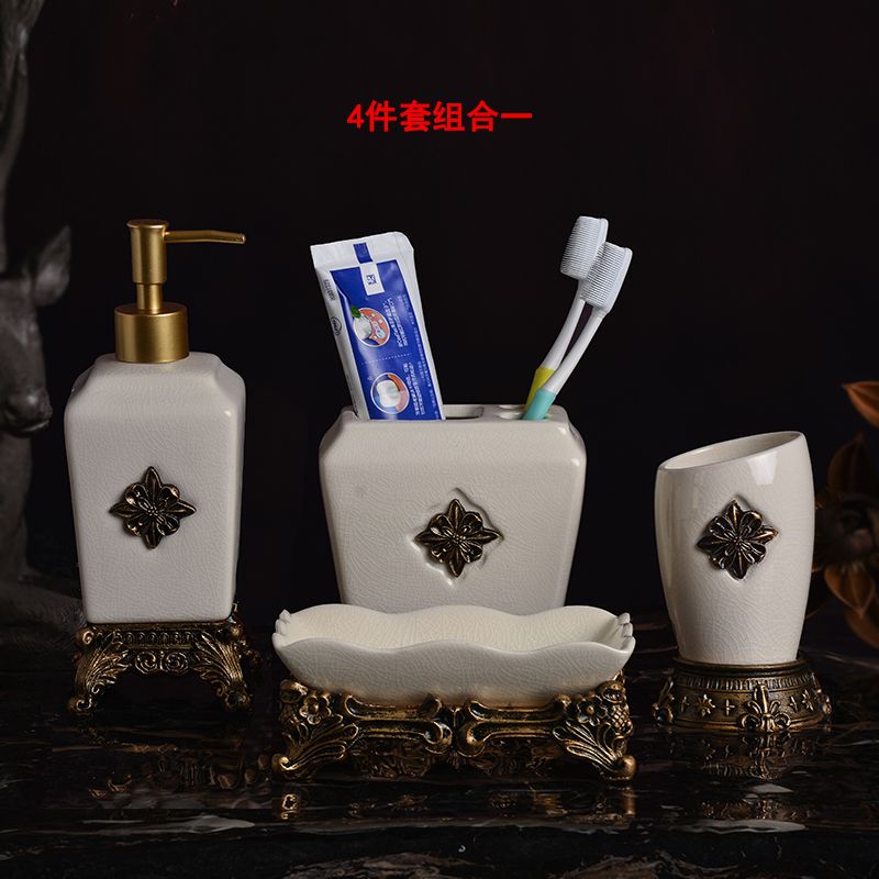 European-style ceramic bathroom five-piece assembly bathroom toiletries brushing mouthwash cup kit ice cracked porcelain tray