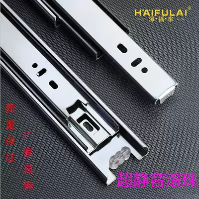 Haifulai drawer track three-section rail thickening buffer damping three-section silent guide rail hardware accessories buffer slide
