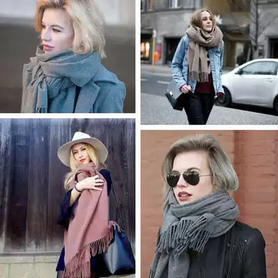 AI light luxury 100 heavy weight first cut wool concave shape Joker Lamb hair scarf female winter oversized shawl dual use