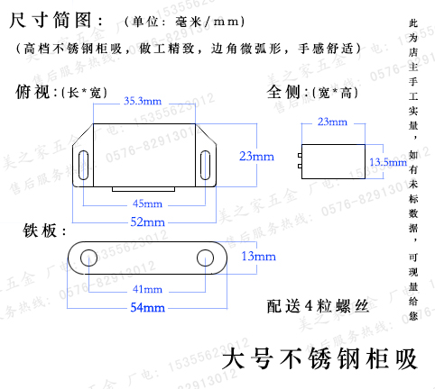 Upscale stainless steel magnetic clamp cabinet suction cabinet door switch door suction oversized suction magnetic touch Large number
