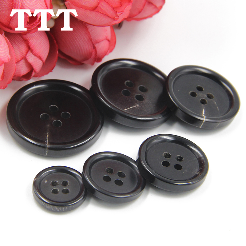 Round four eyes natural real horn black women's suit windbreaker coat coat button suit button button accessories