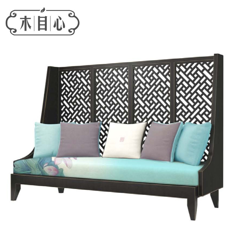 New Chinese-style deck sofa Double three people opposite deck hotel club sample house exhibition center negotiation meeting area leisure high-end