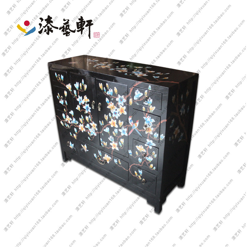 New Chinese style antique furniture hand-painted solid wood sideboard storage shoe cabinet classical TV cabinet porch cabinet antique cabinet