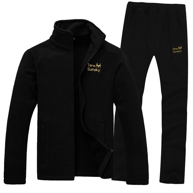 (Taier Sen Skye)Spring and autumn warm fleece jacket men's long-sleeved open-chest suit home wear running suit