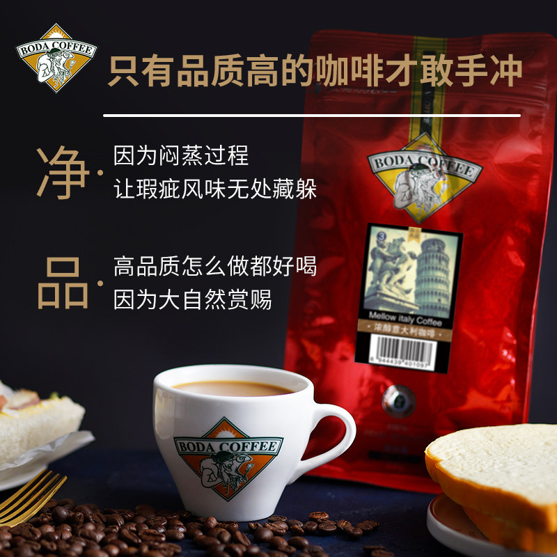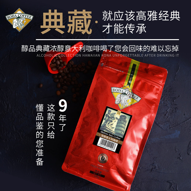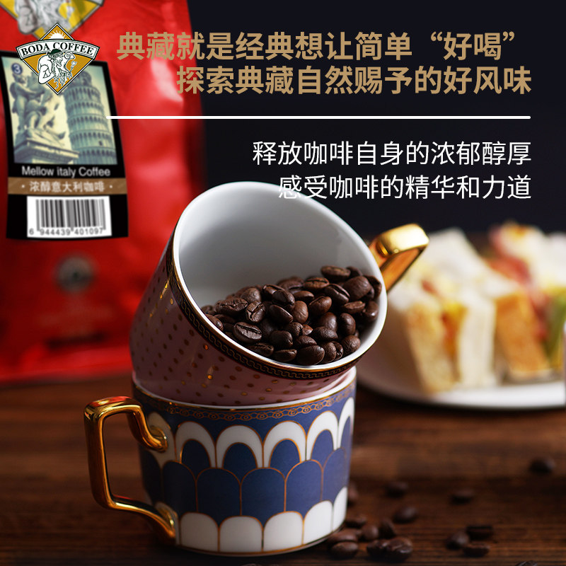 Boda Italian espresso deep roasting can grind pure black coffee powder 500g bag