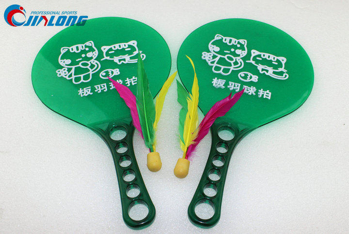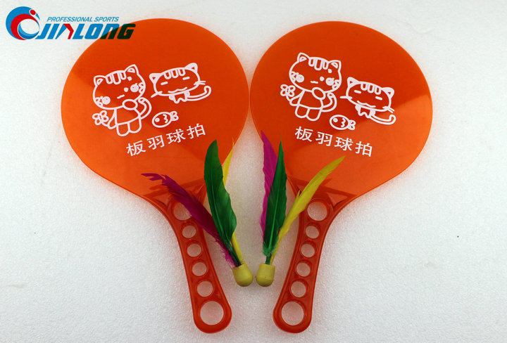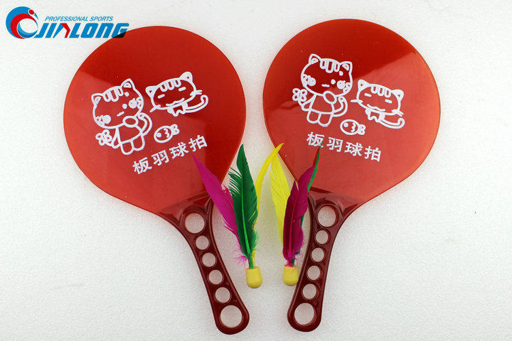 Traditional toys, board badminton racket, three-haired racket, colorful cartoon beach racket set, thickened plastic racket batch