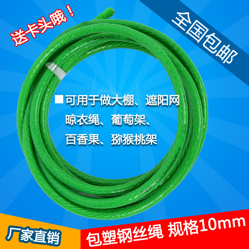 High quality green steel wire rope wrap plastic 10mm pull car rope suspension water pump