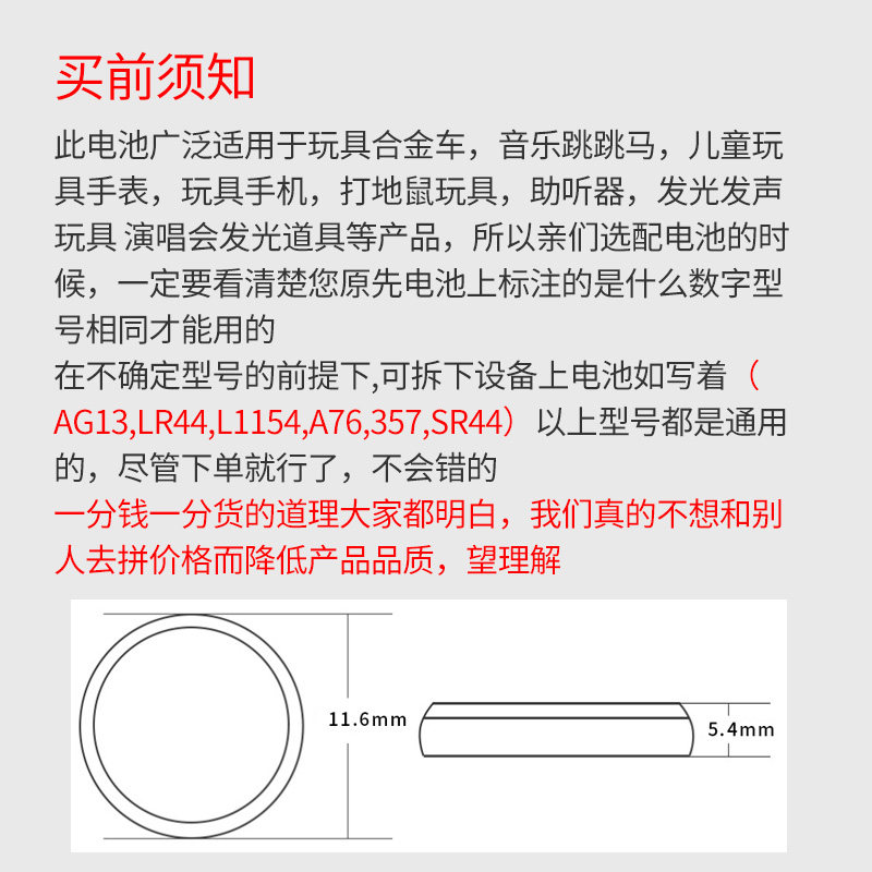 LR44 button BATTERY AG13 BUTTON L1154 COIN TYPE 357A SMALL NIGHT LIGHT Luminous Toy Cruise ruler Electronic
