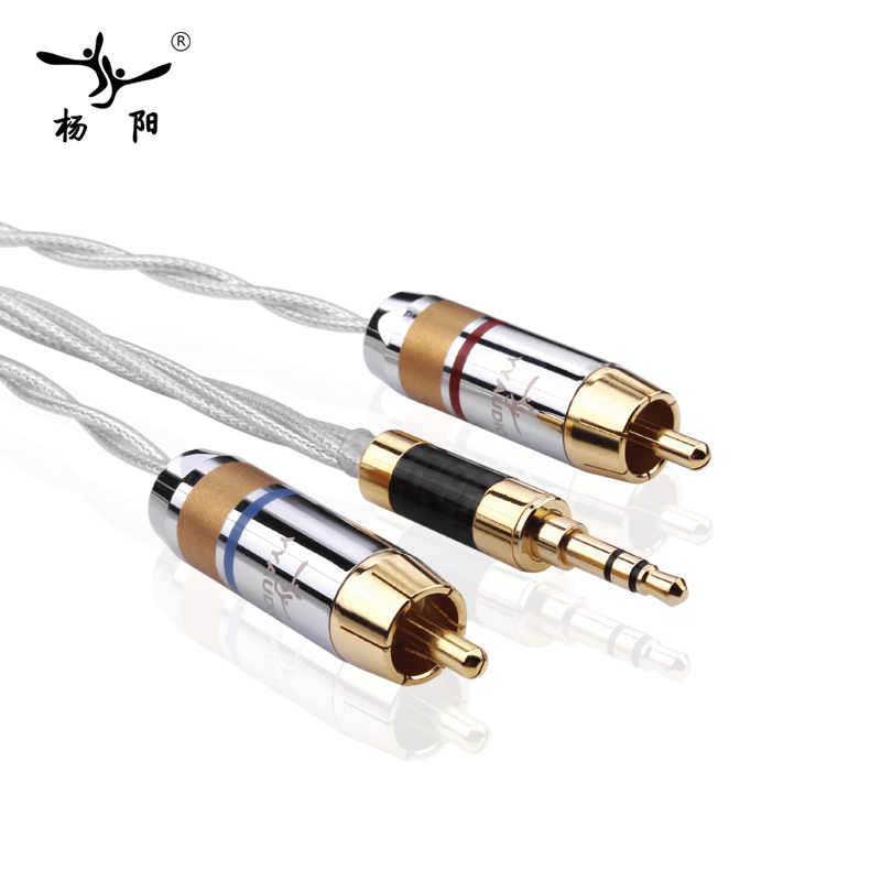 Taiwan YYAUDIO Yang Yang silver carving 3 5mm to double lotus audio line 10% 2 1 points 2 four strands pure silver wire core