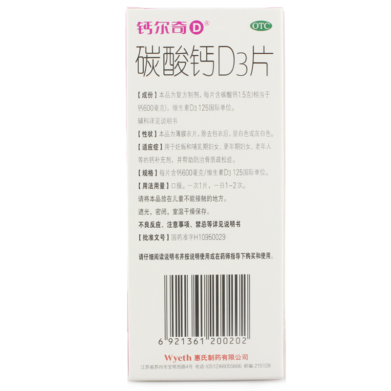 Wyeth Calcium Carbonate D3 100 Tablets Calcium Supplement for the Elderly During Pregnancy and Lactation
