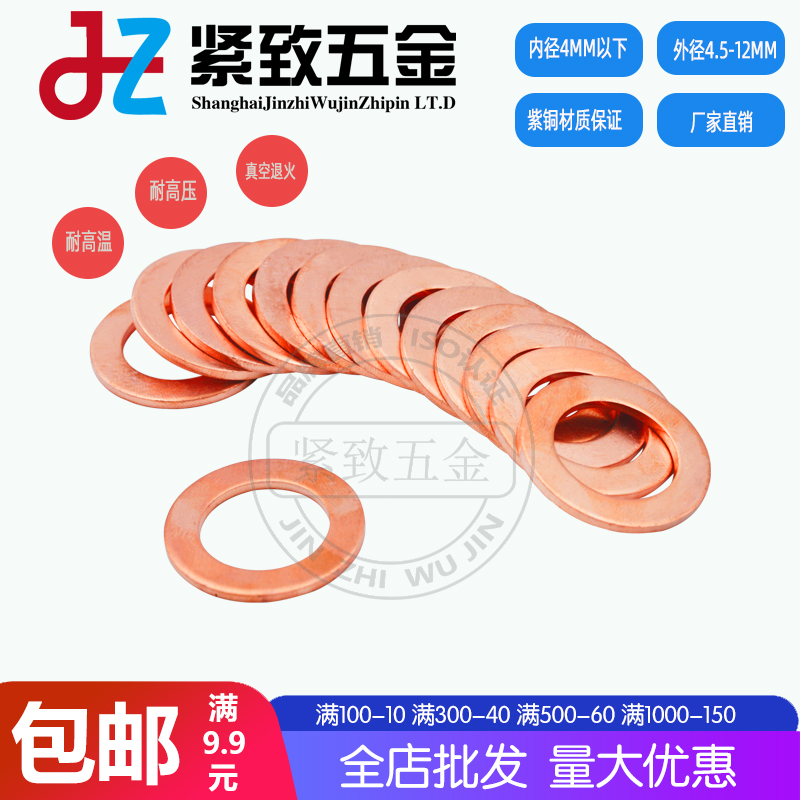 Red copper flat washer inner diameter M3 outer diameter M5-M12 thickness red pure copper sealing sheet non-standard annealing marine high temperature resistance