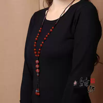 Pure jewelry handmade original natural red agate glass adjustable necklace sweater refining long version female autumn and winter