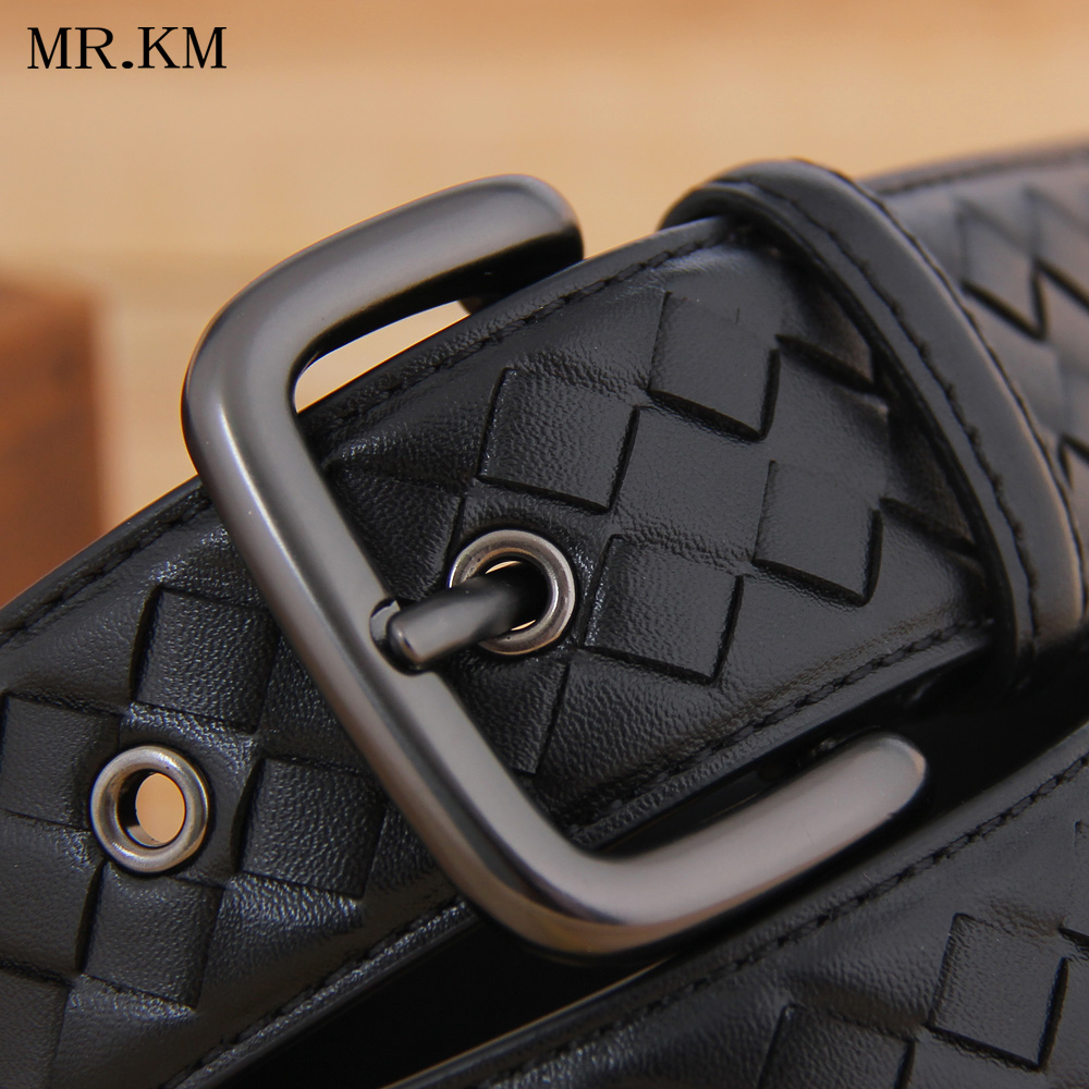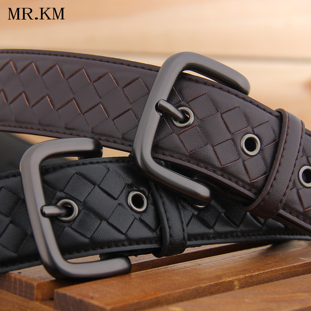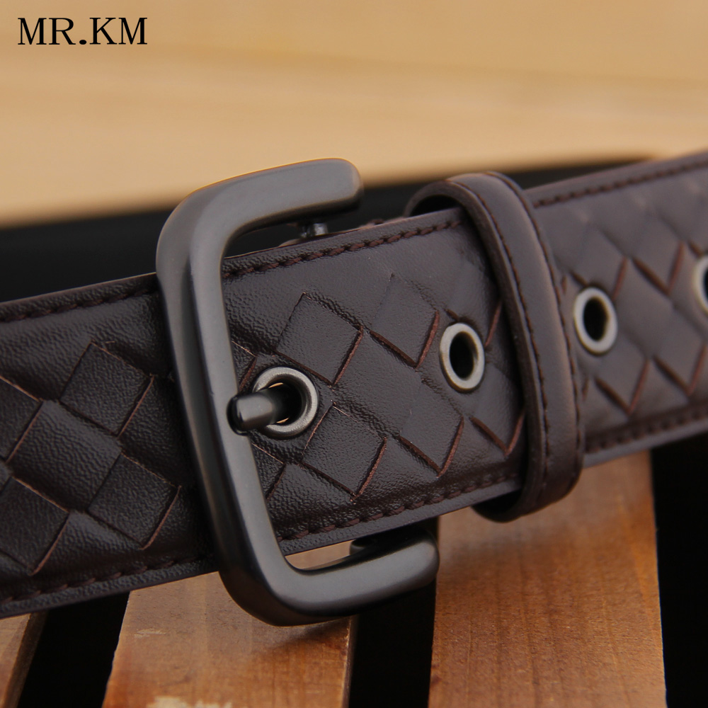 MR KM Belt Men's 3 8cm Wide Braided Leather Belt Fashion Pin Buckle Casual Middle-aged Youth Belt
