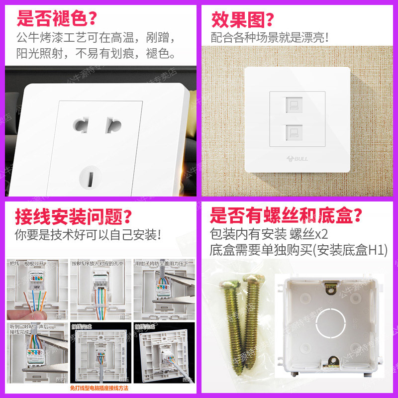 Bull dual ethernet port panel 66 types of broadband network network network box network interface dual port Gigabit socket network cable socket